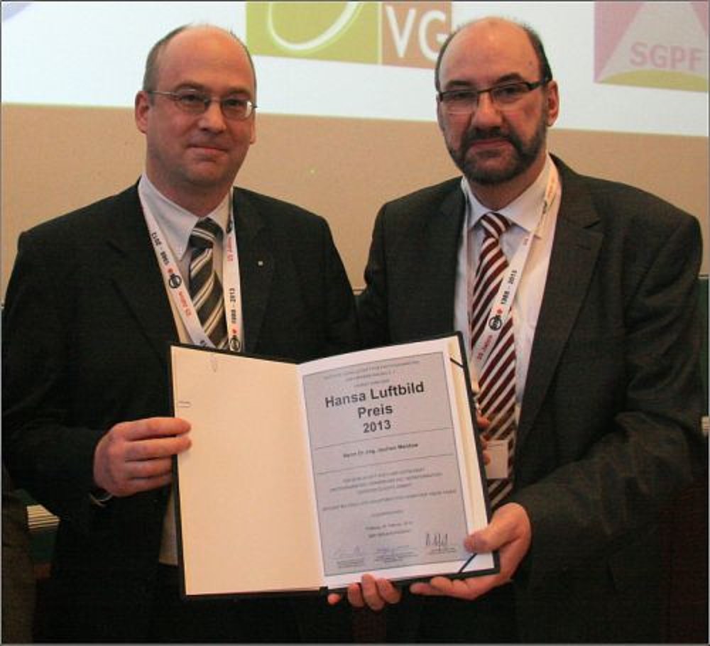The Hansa Luftbild award 2013 has been conferred. It was presented to Dr Jochen Meidrow by Dr Paul Hartfiel, CEO of Hansa Luftbild, on 28.02.2013.