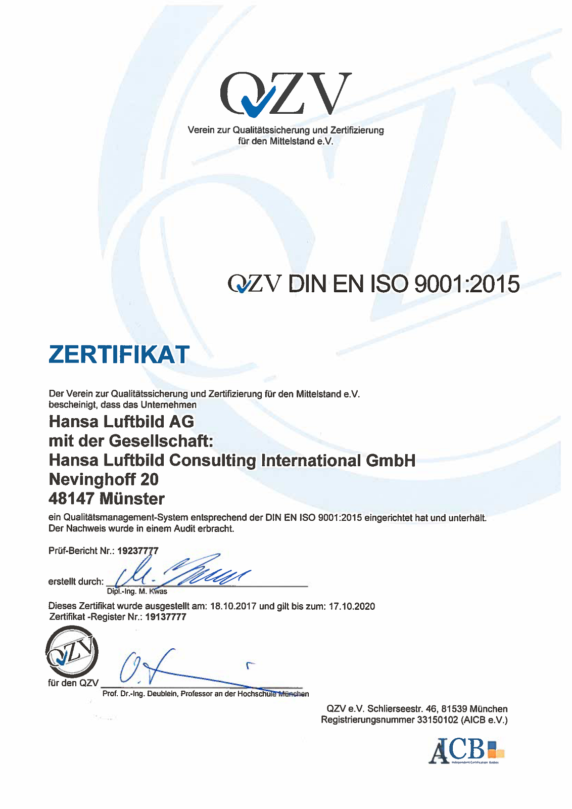 Bereits zum dritten Mal nach der Erstzertifizierung wurde die Hansa Luftbild Gruppe Ende Oktober 2017 erfolgreich nach DIN EN ISO 9001 rezertifiziert. Anders als in den Vorjahren kam dieses Mal die…