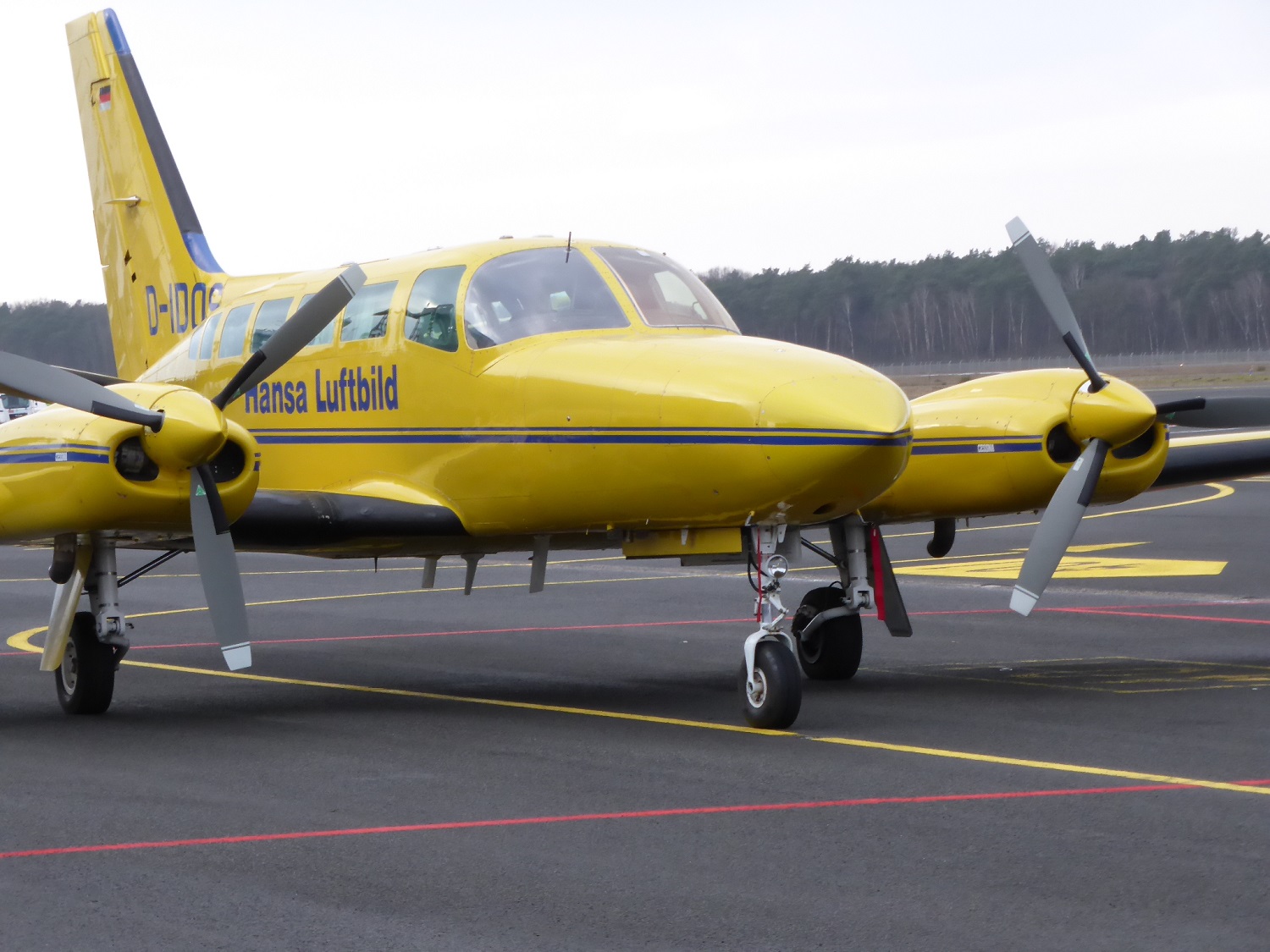 20FEB2021, 0930z, EDDG: Pilotin Claudia Grothe startet beide 375-PS Motoren unserer Cessna 404 auf dem Rollfeld des Flughafens Münster-Osnabrück. Navigator Michal Sanocki überprüft die neue Vexcel…