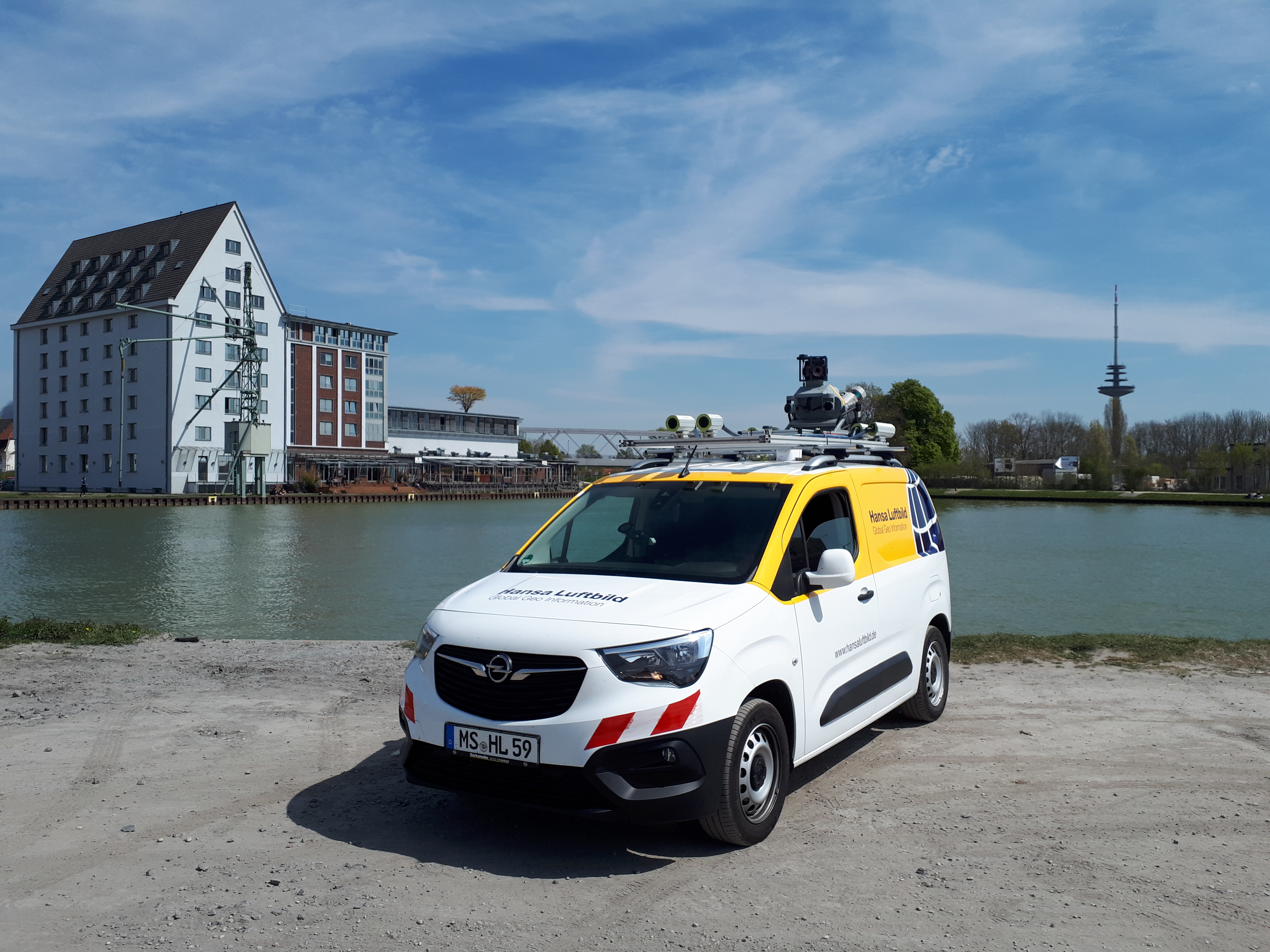 Neue Technik im Mobile Mapping: Seit April 2021 besitzt die Hansa Luftbild AG ein Messfahrzeug mit neuer Sensoren-Konstellation zur Aufnahme von Straßenbereichen.