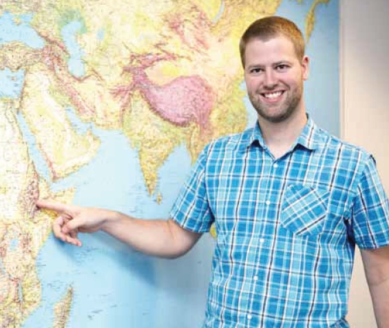 Klaus Drerup, Geoinformatiker bei Hansa Luftbild, wurde für die bundesweit verteilte Infomappe der Berufsinformationszentren porträtiert.