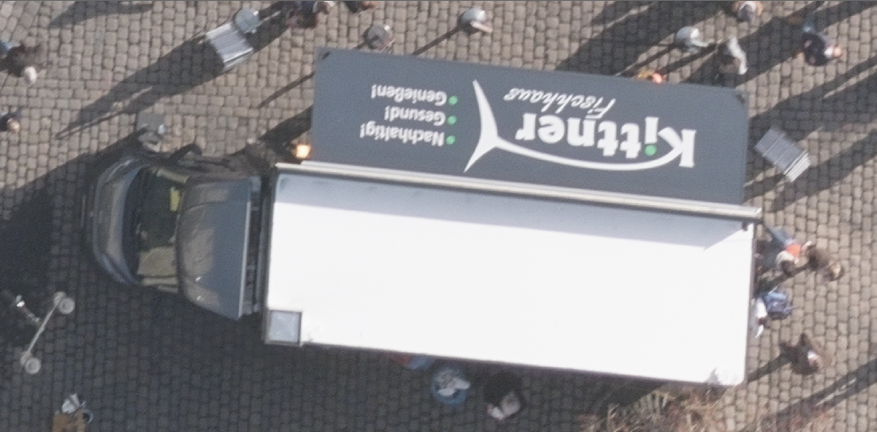 Wie genau die Systeme sind, sieht man an dem folgenden Ausschnitt des obigen Luftbildes aus Münster, das Detail aus dem Wochenmarkt zeigt.